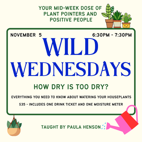 Cold temps, dry heat, and short days can leave your plants (and you!) feeling a little wilted. This cozy, feel-good class covers everything your houseplants need to thrive through the winter months: humidity, watering, feeding, and light adjustments. You’ll leave with practical tips keep your plants lush and your spirits lifted all season long.
