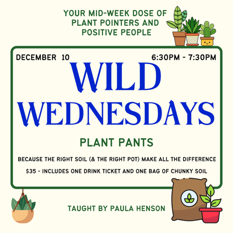 If your plant’s roots are feeling a little cramped, it might be time for a wardrobe change! In this class, you’ll learn how to tell when it’s time to repot, choose the right new “pants,” and refresh the soil for healthy growth. You’ll leave confident, equipped, and maybe a little dusty from all the fun hands-on learning.